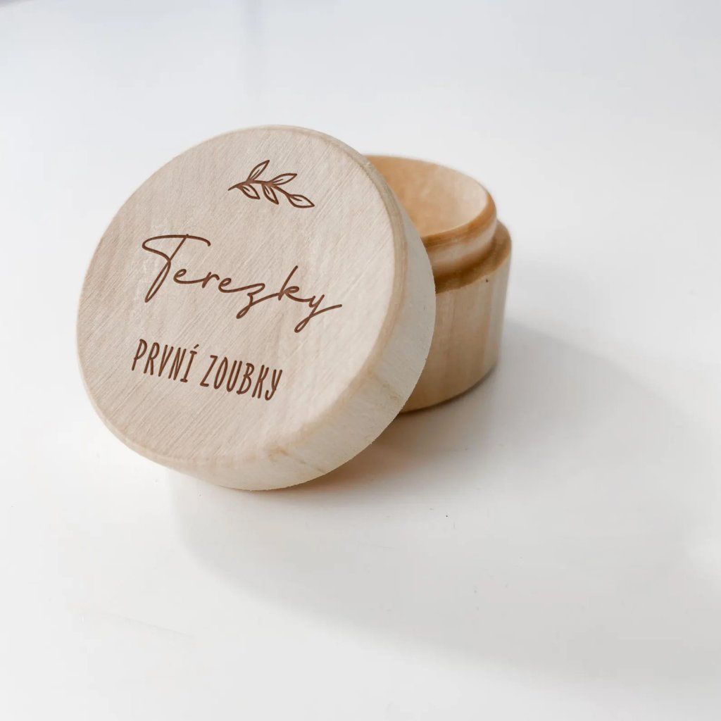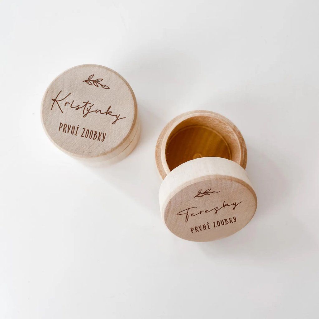 Kulatá dřevěná krabička na první zoubky je dokonalým místem pro uchování mléčných zoubků, které jsou vzácnou připomínkou dětských let.