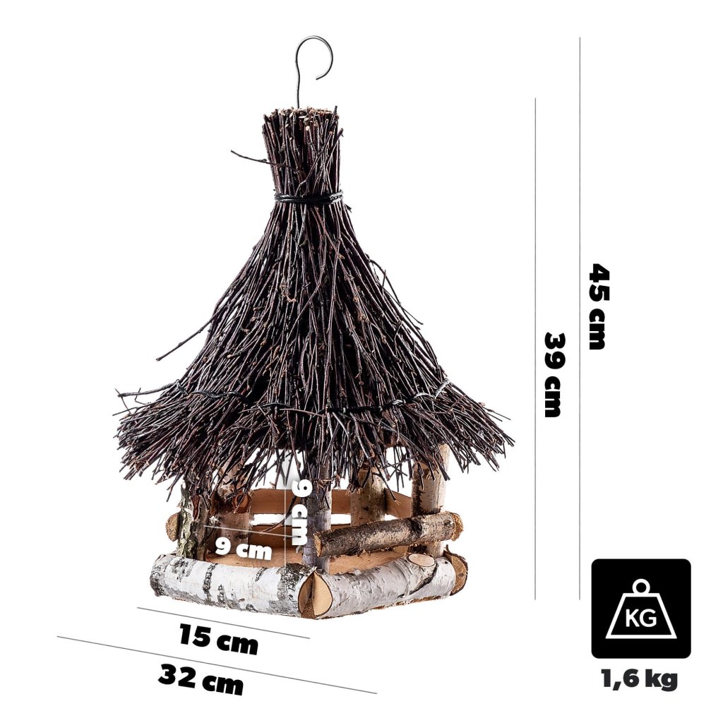 Na střeše je umístěn dekorativní motiv ptáčka, který dodává krmítku kouzlo a činí z něj nejen praktický, ale i estetický doplněk vaší zahrady, terasy či balkonu. Díky své velikosti se hodí pro více druhů ptactva, poskytuje jim útočiště i dostatek prostoru pro krmení.