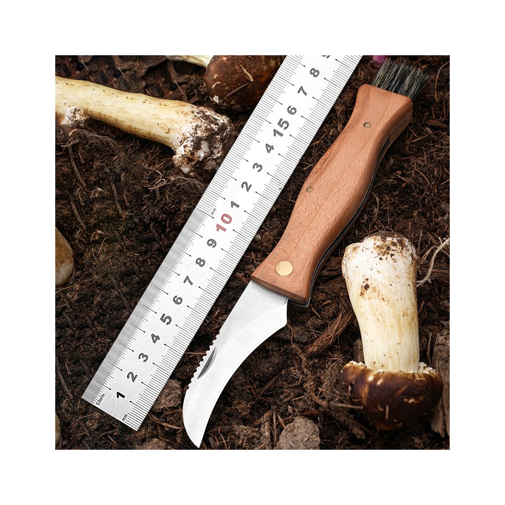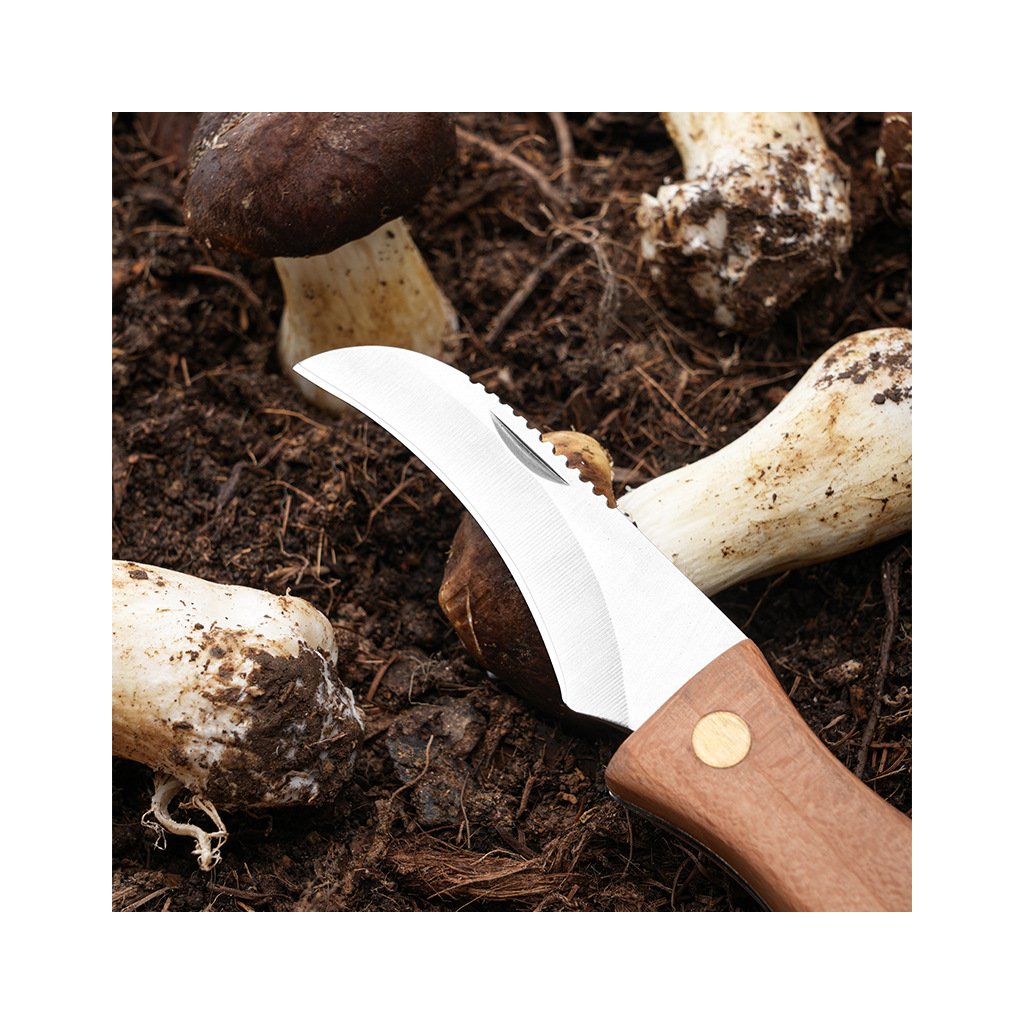 - Zahnuté ostří z nožířské oceli pro pohodlné a přesné odřezávání hub přímo v terénu.