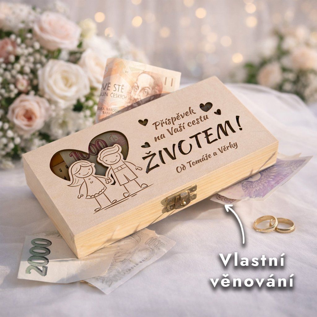 Krabička na peníze – Příspěvek na Vaší cestu ŽIVOTEM, s věnováním