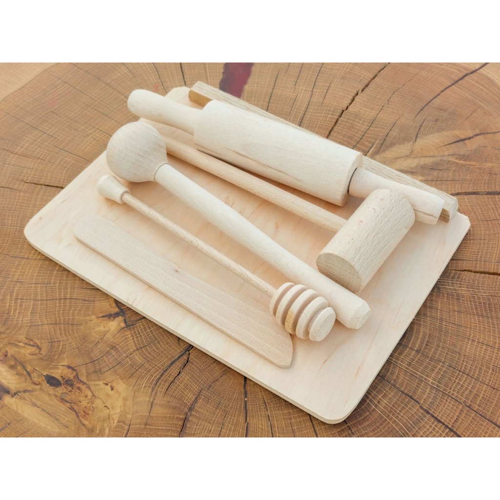 Dřevěná dětská kuchyňská sada – 8 dílů pro malé kuchaře